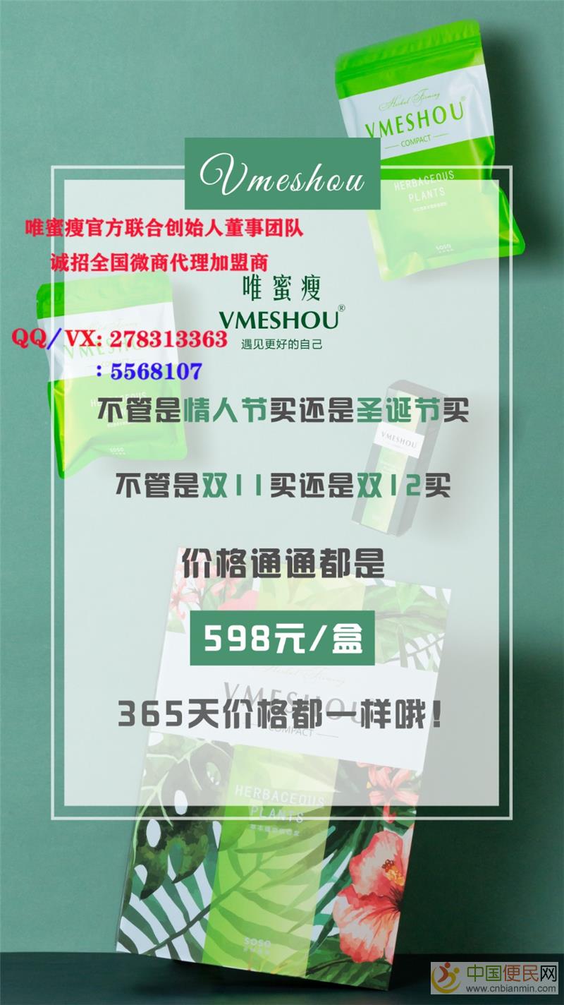 唯蜜瘦是一款在食药监正规备案的拥有R商标以及各项专利的可信任产品www.cnbianmin.com中国便民网。自去年研发面世,已经在全国范围拥有数十万消费者,获益人群巨大,所有客户反馈全部来源真实,并且以不断辐射的超好口碑迅速占领更大的市场份额。并且只有正规微商才有正规货源,其他平台均为假货!